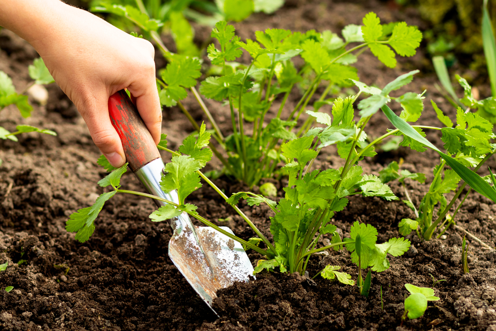 Growing coriander from its seed is easy to do. Your first decision is whether to grow it in a pot or outside. This depends on the temperature of where you live and how much space you have. Both work well but we prefer growing outside if the elements suit. If you choose a pot it will need to be at least eight inches deep. If you grow outside then you have your compost buried around 18 inches deep.